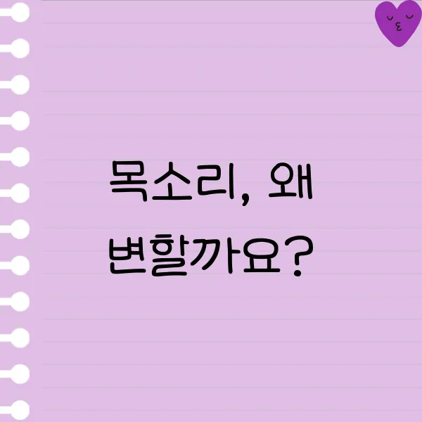 * 음성 언어 병리학자와 상담: 목소리 변화가 심하거나 지속된다면 음성 언어 병리학자와 상담하는 것이 좋습니다. 정확한 진단과 치료를 통해 목소리 문제를 해결할 수 있습니다.